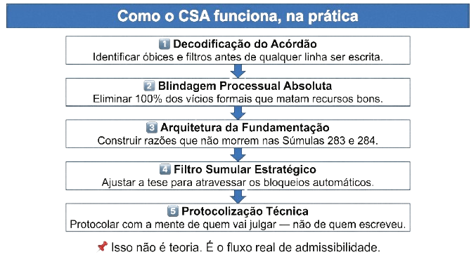 No CSA, eu não ensino teoria acadêmica; eu entrego o mapa prático de quem esteve do outro lado da mesa, para que você domine a admissibilidade e pare de perder casos por erros evitáveis.